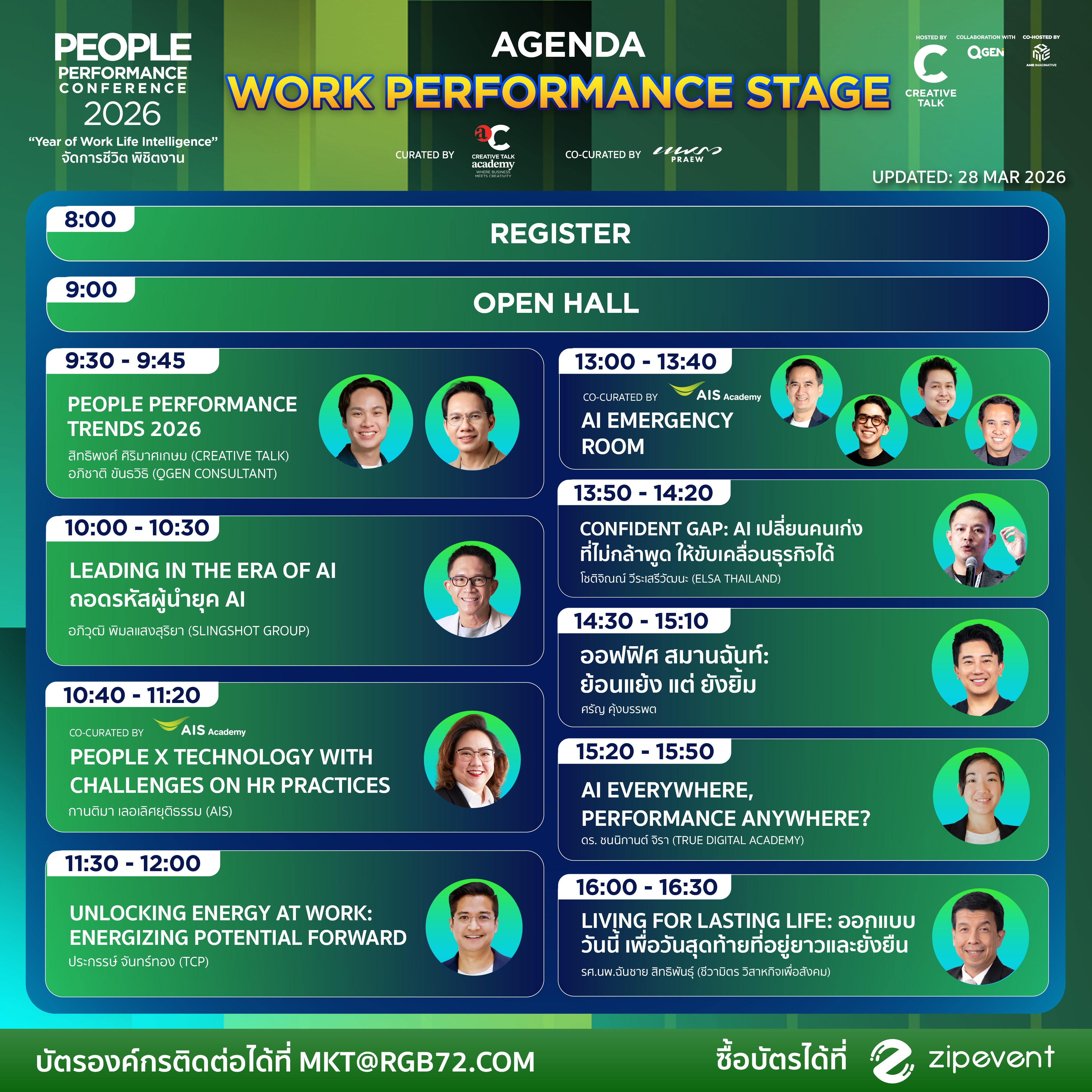 เพราะปัญหาการบริหารคน, การจัดการชีวิต, work life balance, การเป็นเดอะแบก, ปัญหาการสื่อสารกับ Gen รุ่นใหม่ กับ Gen รุ่นเก๋า, รวมไปถึงการสร้างพลังให้ทีมงานในวันที่โลกเต็มไปด้วยความท้าทาย ทั้งหมดนี้เป็นสิ่งที่พวกเราในฐานะคนทำงานจำเป็นต้องเผชิญ และคำตอบของคำถามเหล่านี้ คุณสามารถพบได้ในงาน People Performance Conference 2026